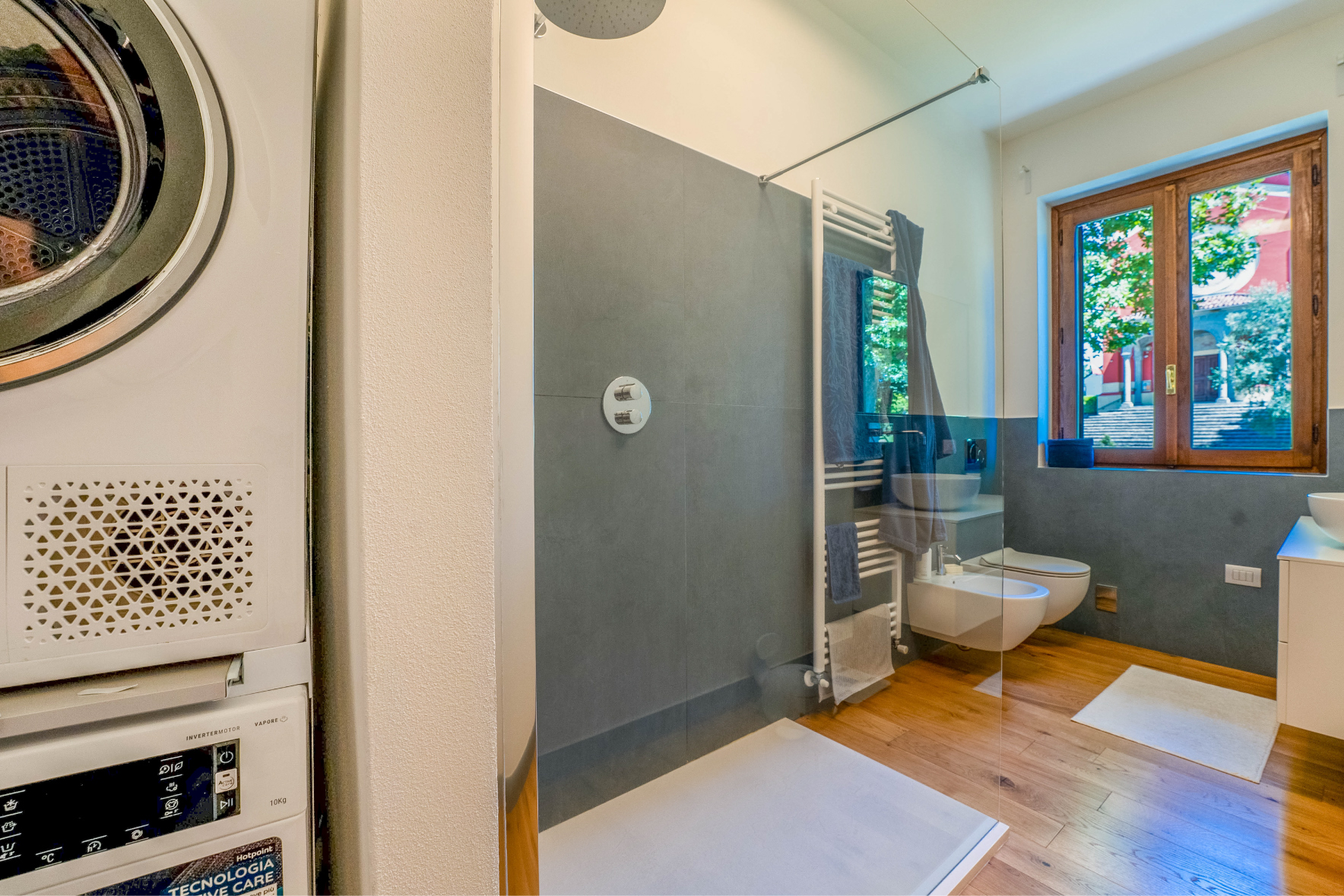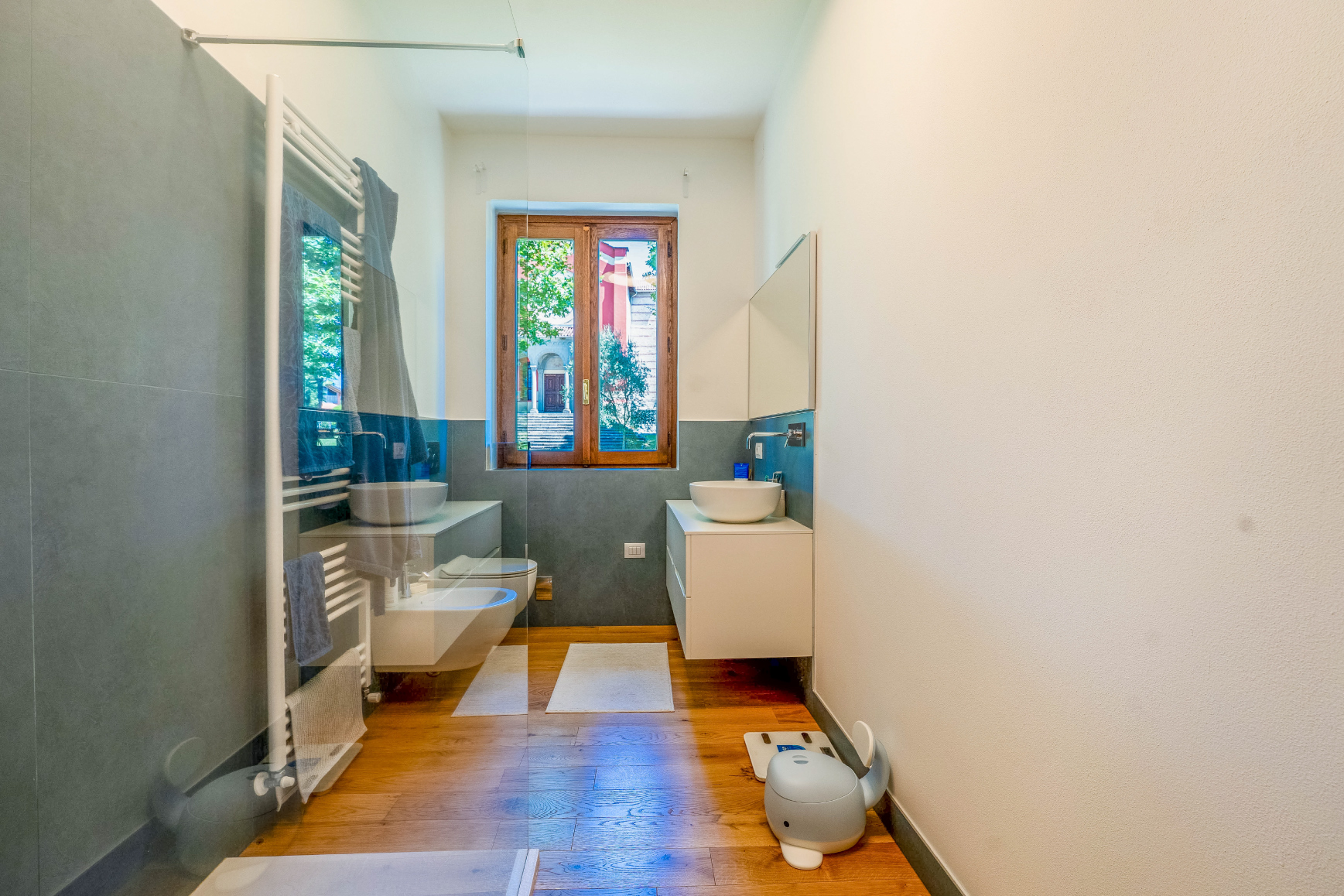 L’immobile presenta finiture di alta qualità, tra cui pavimenti in massello di rovere, serramenti in legno con doppio vetro e persiane in legno. Il sistema di riscaldamento è suddiviso in tre zone per una gestione efficiente degli ambienti, mentre la caldaia ibrida, a gas ed elettrica, è stata installata nel luglio 2025. L’abitazione è inoltre dotata di un impianto domotico di base e di un sistema di aria condizionata canalizzata con controllo da remoto, che garantisce comfort durante tutto l’anno. Inoltre, un impianto di allarme sulle persiane, sulle finestre e perimetrale e telecamere di videosorveglianza il tutto gestito anche via App.