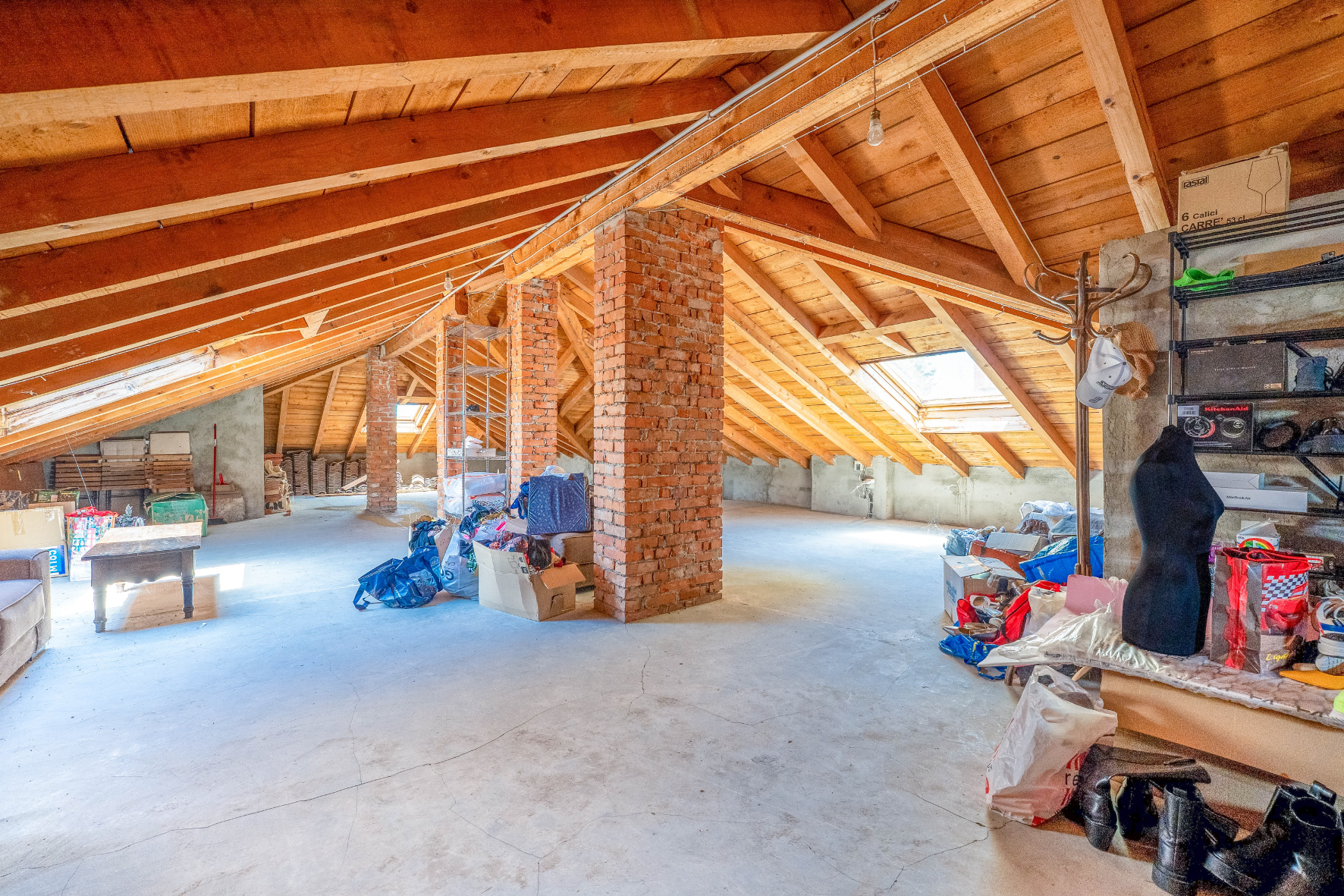 Al piano seminterrato sono presenti l’autorimessa con due posti auto, due cantine, la lavanderia e un ulteriore ripostiglio. La rampa di accesso al box è stata completamente rifatta nel dicembre 2024. La proprietà comprende anche un livello superiore con potenziale di ampliamento, attualmente oggetto di studio per una possibile valorizzazione.